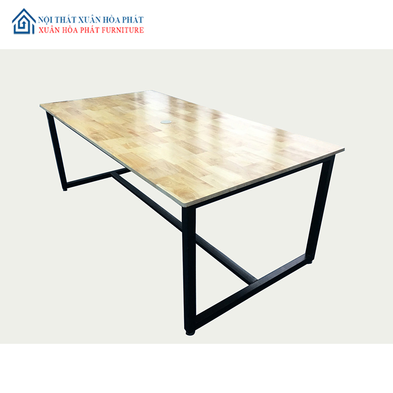 Bàn họp phù hợp cho 6 – 8 người ngồi, có thanh sắt kết nối 2 đầu vừa là điểm tựa chống mỏi chân vừa là giá đỡ tăng độ vững chắc cho chân bàn.