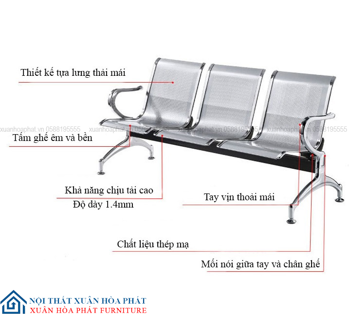 – Thuộc dòng ghế băng chờ 3 chỗ ngồi tựa liền có chân điều chỉnh độ cao thuận tiện.