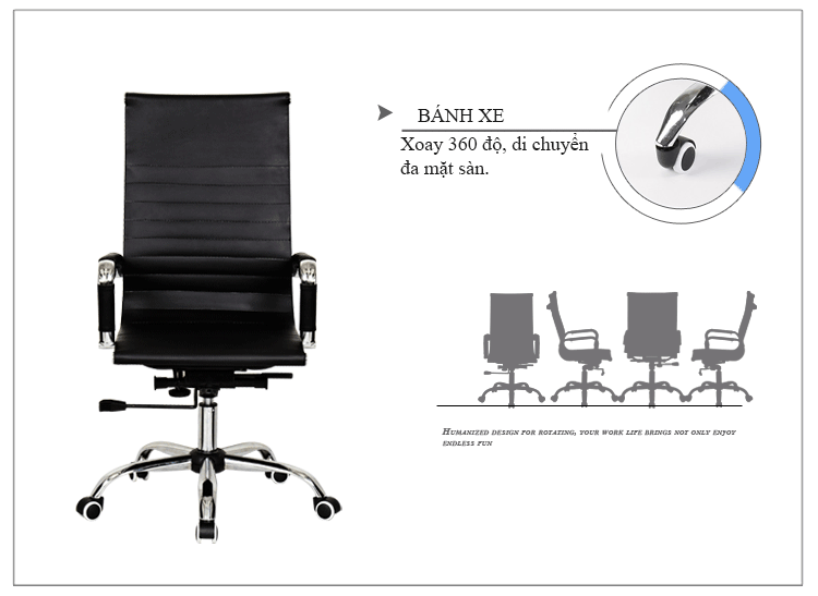 Ghế Xoay Văn Phòng Da Lưng Cao GHE_VP208 được làm từ da công nghiệp cao cấp nên rất thoáng mát, độ bền cao, sử dụng càng lâu càng bóng đẹp.