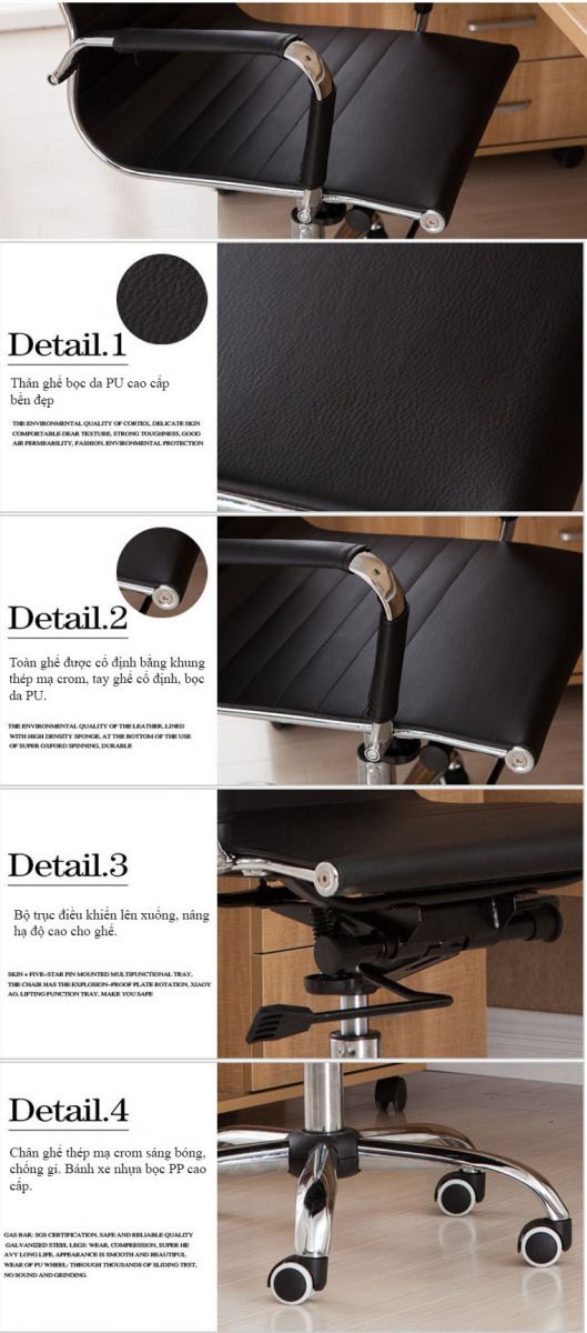 – Khung ghế được làm bằng chất liệu thép mạ crom chịu lực tốt, đảm bảo an toàn tuyệt đối cho người ngồi khi ngã tựa về sau.