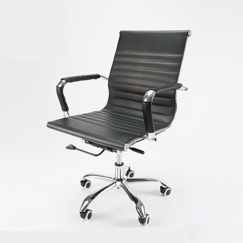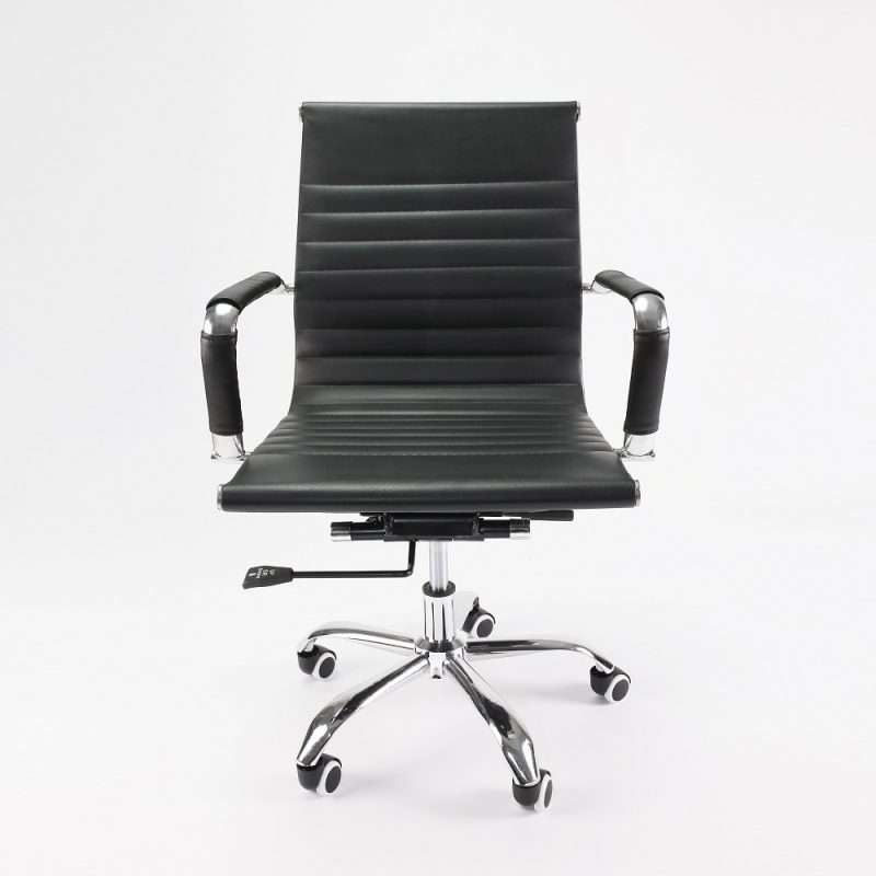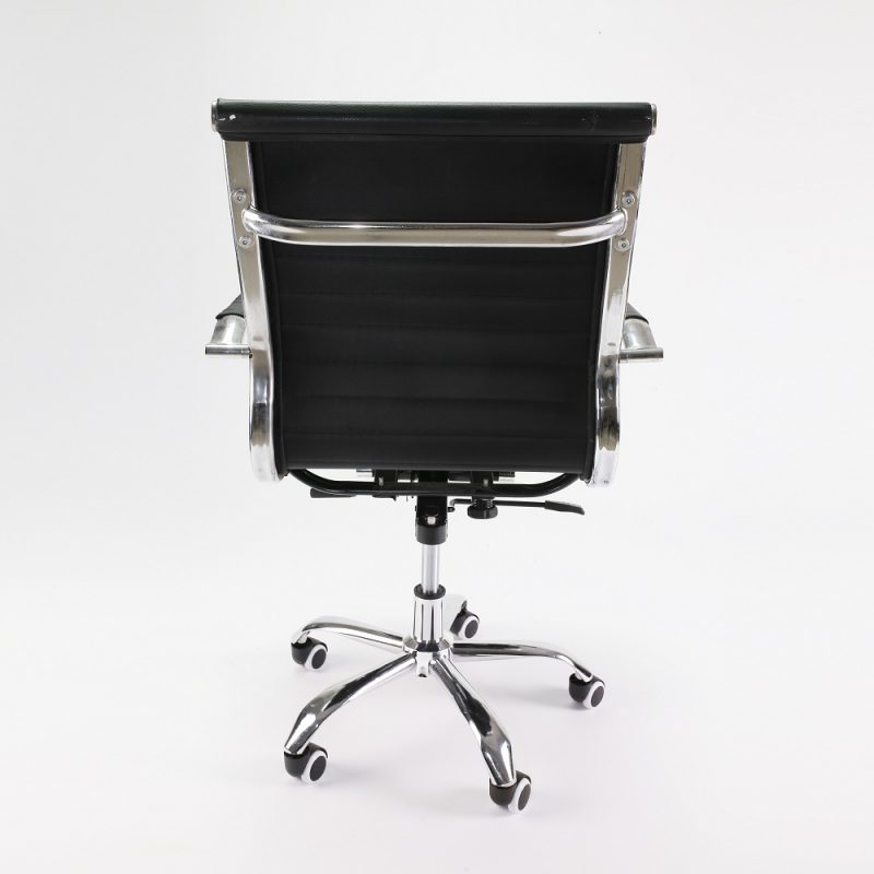 Ghế Xoay Văn Phòng Da Lưng Thấp GHE_VP207 có cấu tạo đơn giản, thiết kế tinh tế, đẹp mắt với 2 bộ phận là khung thép mạ crom sáng bóng và lưng ghế bọc da PU màu đen mềm mại.