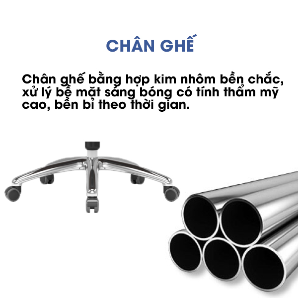 • Mâm ghế có cơ chế ngả lưng 90-135 độ, khóa cố định nhiều vị trí