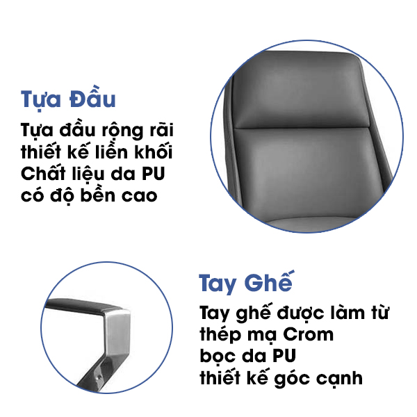 • Tựa tay bằng hợp kim nhôm bọc da PU êm ái