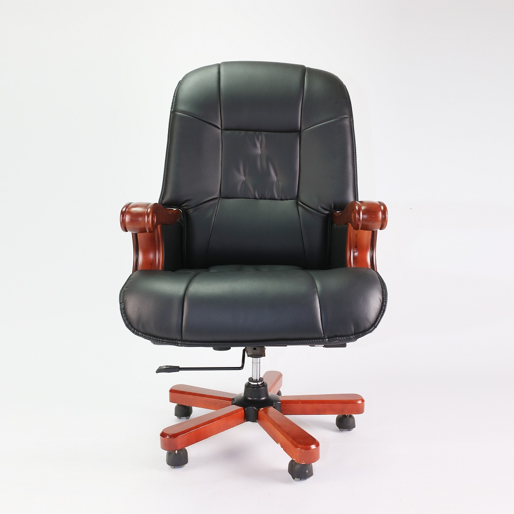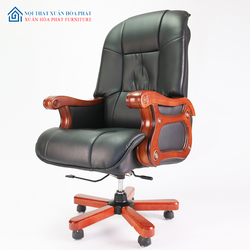– Ghế văn phòng cao cấp tay vịn bằng gỗ sồi tự nhiên, bọc da bề mặt, liền lưng tựa mạnh mẽ sang trọng.