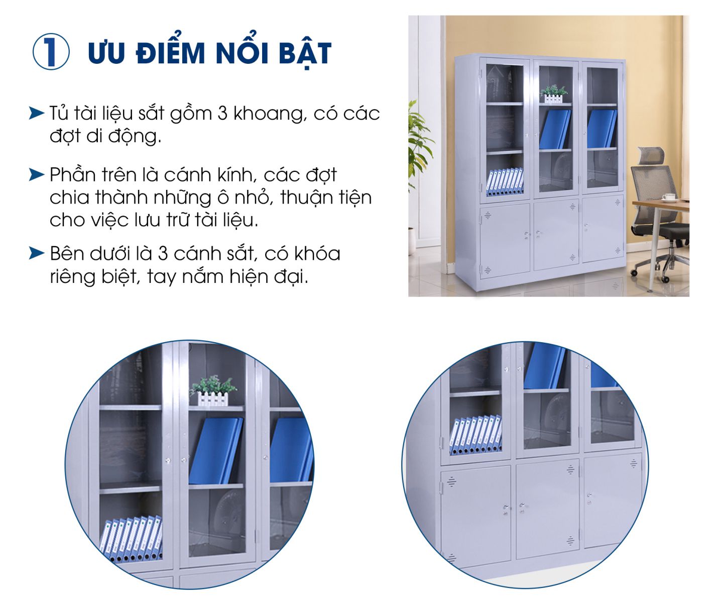• Cánh mở sắt chống gì với thiết kế khe thông gió mỗi cửa sẽ giúp cho đồ đạc luôn được bảo vệ, không bị ẩm mốc