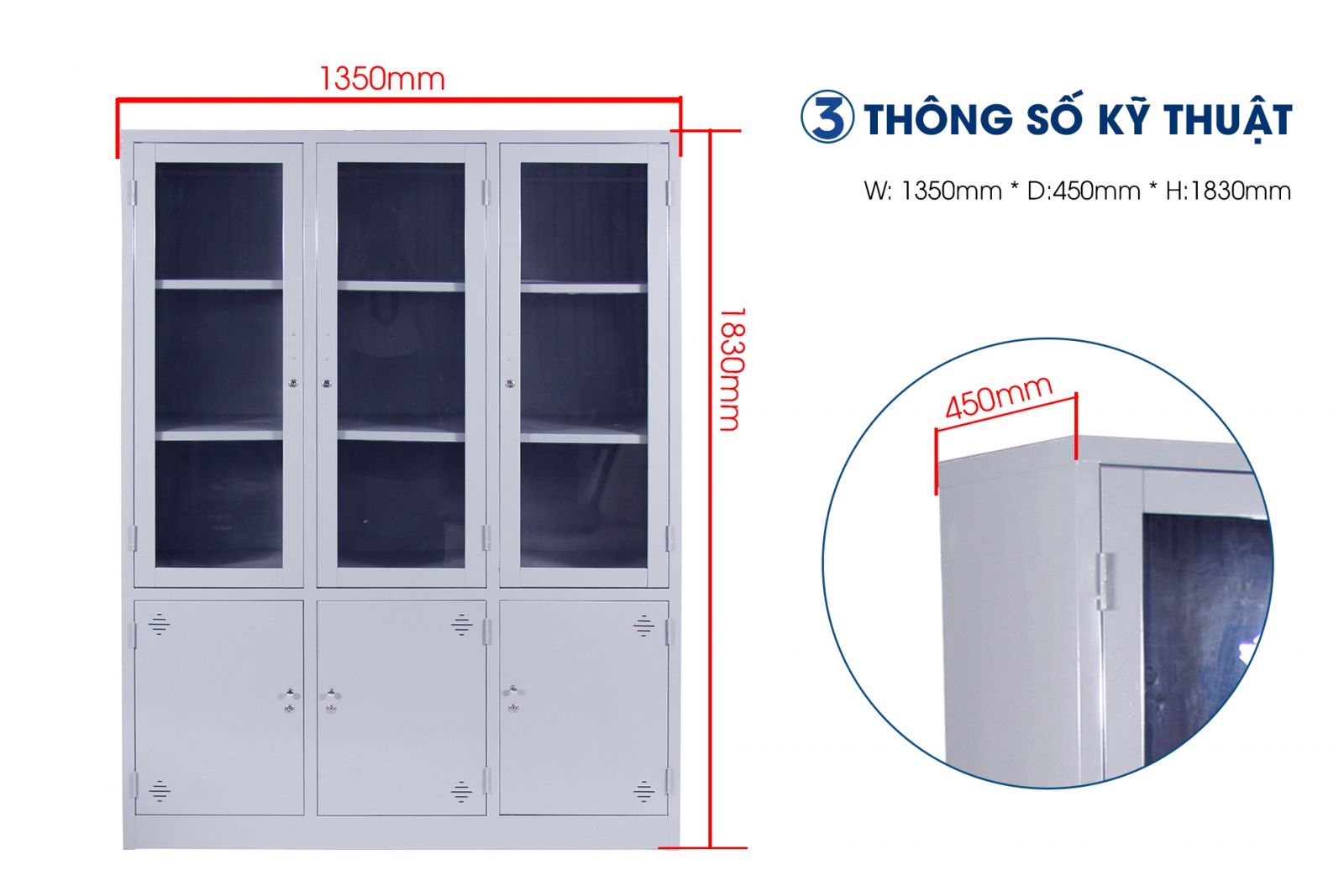 • Kích thước: W1350 x D450 x H1830 mm